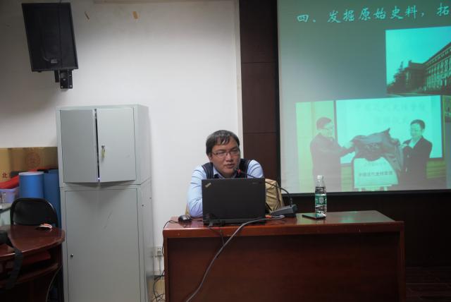 在介绍完花衣期制度后,吉辰老师针对历史学科的学习向大家提出了几点建议。首先,需要阅读史料学著作,建立知识体系。第二,从基础史料入手,打好基础。做研究不能仅停留在基础史料,但必须从此入手。第三,汲取掌故学养分,培养历史感。由于研究方法、领域等差异,掌故学者有时比历史学者更具历史感,我们可以辩证地借鉴其成果。第四,发掘原始史料,拓展研究视野。最后,要善用电子资源。吉辰老师也向同学们推荐了中国近代史的基本史料和常用的数据库,相信对同学们今后的学习会有很大帮助。在提问环节,同学们积极与老师交流,收获颇多。到场成员与嘉宾合影留念后,讲座圆满结束。