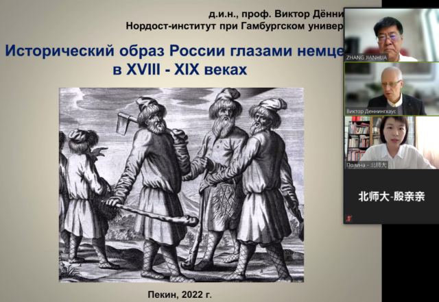 2022年5月28日及5月29日下午,威尼斯9499登录入口“励耘学术讲堂”历史学系列讲座在线举行。德国汉堡大学东北德意志历史与文化研究所副所长维克多·杰宁哥豪斯(Victor Dönninghaus)教授做了《认识异邦:18—19世纪德国人眼中的俄罗斯形象》、《神话与现实:20世纪的德国与俄国的形象互识》两场系列讲座,讲座由威尼斯官网张建华教授主持,博士生彭乐梅、博士生李红娟做现场翻译。威尼斯官网和珠海校区师生及校外诸多高校观众通过zoom收看讲座,人数最多时达120多人次。