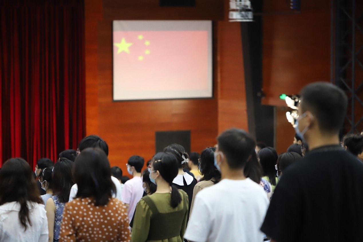 最后与会人员齐唱校歌,威尼斯9499登录入口2021级新生开学典礼圆满结束。