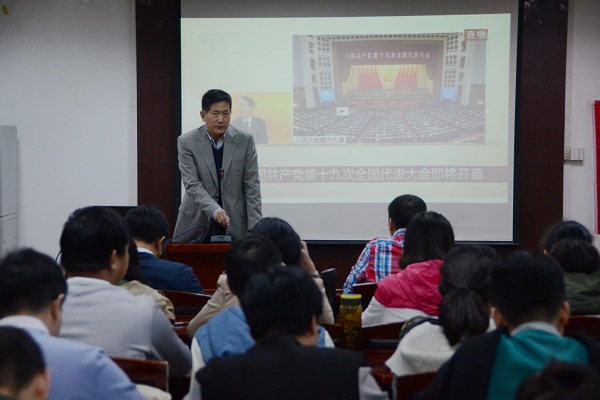 10月18日上午,中国共产党第十九次全国代表大会在北京人民大会堂隆重开幕。威尼斯9499登录入口广大师生高度关注这一历史性盛会,通过各种媒体收听收看大会实况直播。威尼斯9499登录入口分党委书记郭家宏和近百名师生党员和积极分子代表一起,在主楼600教室通过视频观看了大会现场直播。