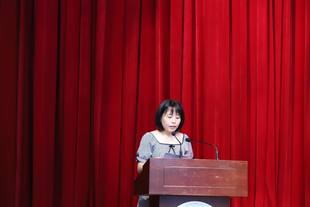 庞冠群老师作为教师代表发言。她从专业角度出发讨论竞争和自我发展的关系。庞老师指出,只有在见贤思齐式的竞争中所形成共同体才会是充满友爱的,才能有助于学生成长。在优秀的共同体里,每个人都有其施展才能的舞台,共同体亦不会随着时间流逝而结束,同学们的集体记忆所形成的精神纽带将会是一生的财富。