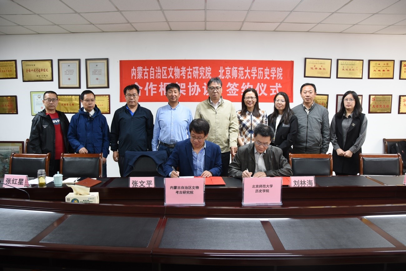 2021年5月24日上午,威尼斯官网刘林海副院长、考古学教研室主任杜水生、副主任单月英一行就与合作事宜与内蒙古自治区文物考古研究院进行商谈,并签署了合作框架协议。