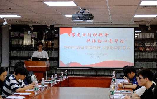 第二分论坛主要围绕回顾新中国成立七十五周年重大成就、践行学校第十四次党代会提出的“三种文化”的落实和学生党支部建设与党员发展的问题进行讨论,同学们从自身经历和实践经验出发,梳理总结了新中国成立以来国家在改革开放和师范教育等方面采取的重大决策和取得的伟大成就,探讨了作为学生党员如何在学习和工作中践行学校提出的“三种文化”,做好支部建设和党员发展的工作。