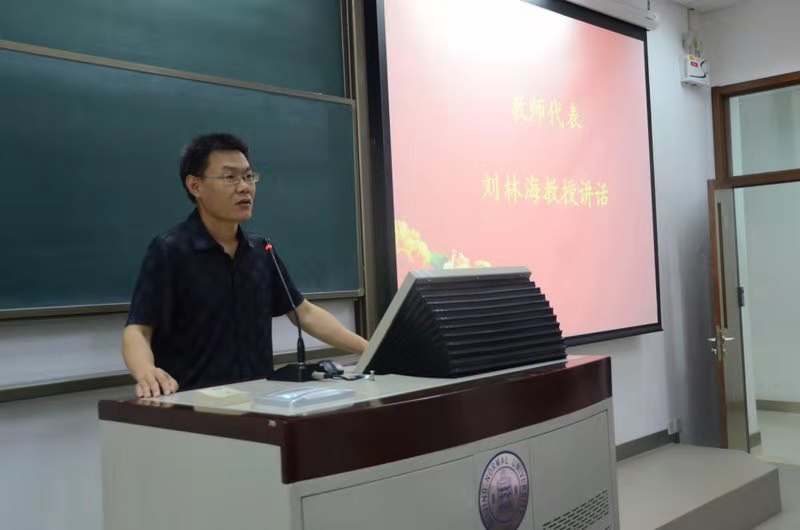 随后,教师代表刘林海老师上台发言,希望同学们在开学之初就制定适合个人发展的目标,为大学生活做好规划。