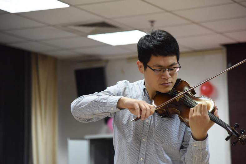 首先进行表演的是任美琪同学,她单独演唱了一首《失恋阵线联盟》,引起在场观众跟唱。张昊同学带来小提琴独奏《Crdas》,老师同学们细心聆听并报以热烈掌声。随后,王渊河同学带来独唱歌曲《春泥》,台风稳重、音色富有感染力,同学们报以热烈掌声并欢呼支持,氛围十分融洽。