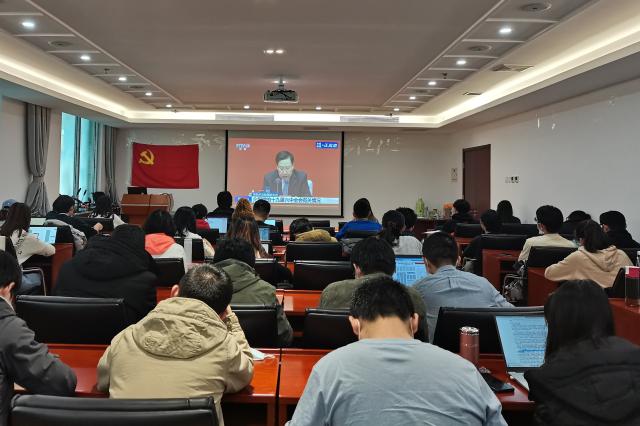 2021年11月12日上午10时,中共中央举办新闻发布会解读党的十九届六中全会精神。威尼斯9499登录入口部分团学骨干在团委的组织下,参加学院党委统一组织的直播观看活动。