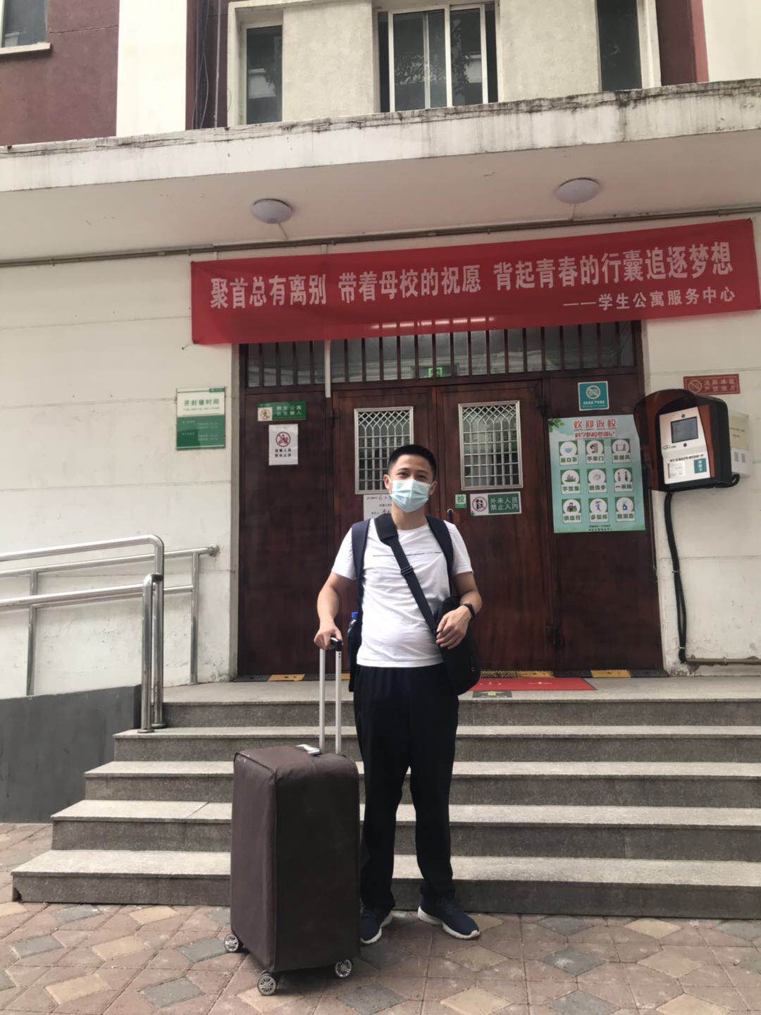 6月9日上午9点,威尼斯9499登录入口迎来了首位返校毕业生胡龙同学,赵云慧副书记、潘若天老师到校门口迎接。胡龙按照“一查二验三测四通过”入校。入校后,赵云慧副书记、潘若天老师及时开展宿舍走访,详细了解学生情况,传递关怀温暖。临别之际,胡龙同学对学校和学院的悉心安排表示诚挚的感谢。