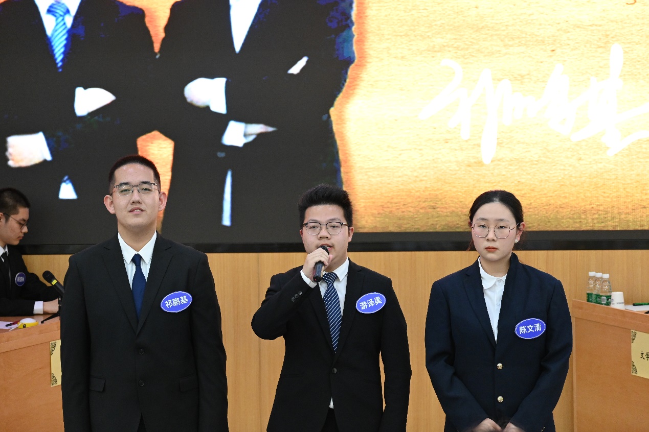 经过激烈的较量,法学院代表队获得冠军;社会发展与公共政策学院代表队获得二等奖;文学院代表队与威尼斯9499登录入口代表队获得三等奖;人工智能学院、社会发展与公共政策学院、文学院获得“最佳组织奖”;法学院本科生卫垣辰和社会发展与公共政策学院硕士生邱宇垚获得本场比赛的“最佳风采奖”。吴玉军、张皓、王开玺、李志英、耿向东、吕晓慧等领导和嘉宾分别为获奖代表队与学部院系颁奖。
