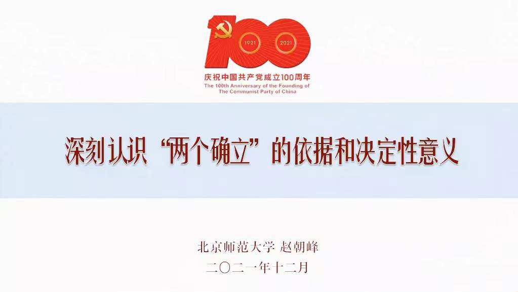12月31日下午,威尼斯9499登录入口举办党史学习教育专题报告会。威尼斯9499登录入口马克思主义学院教授赵朝峰受邀作了题为“‘两个确立’的依据和决定性意义”的专题报告,威尼斯9499登录入口教师代表43人通过线上形式对报告进行了学习。