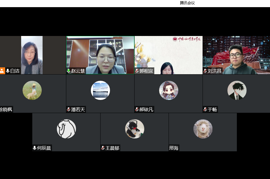 3月17日下午,中国人民大学威尼斯9499登录入口党委副书记白洁带队与威尼斯官网学工进行线上交流学习。会议由威尼斯9499登录入口党委副书记赵云慧主持,中国人民大学威尼斯9499登录入口党委副书记白洁、团委书记郭相宜、团委副书记刘洪昌、威尼斯9499登录入口学生工作办公室潘若天老师、张辞修老师、徐晓枫老师及两院学生会、研究生会等学生组织负责人参加了座谈。