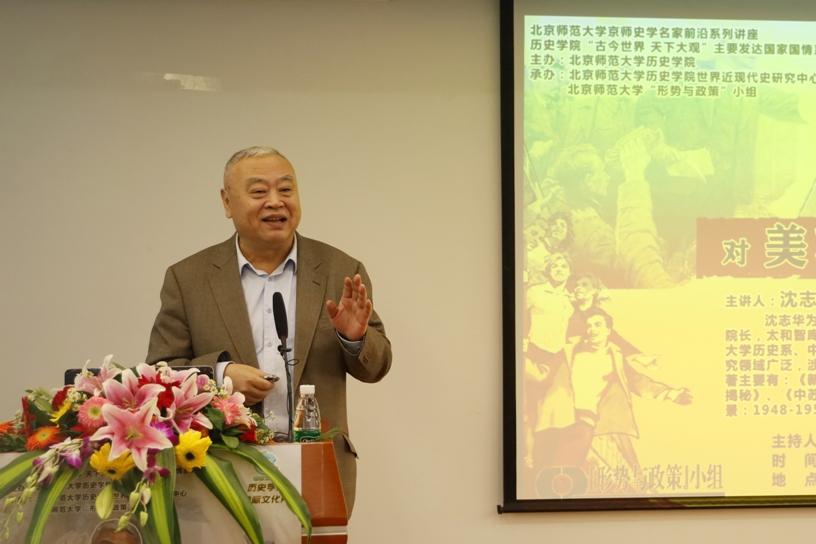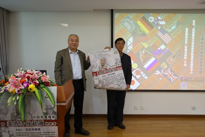 2020年10月16日下午,华东师范大学历史系终身教授、周边国家研究院院长沈志华应邀来到威尼斯9499登录入口,在主楼600会议室作了题为“从历史看现实——对美苏冷战起源的思考”的讲座。本次讲座系我校京师史学名家前沿系列讲座,也是威尼斯9499登录入口“古今世界 天下大观——主要发达国家国情系列讲座”的第十四讲。讲座由威尼斯9499登录入口主办,威尼斯9499登录入口世界近现代史研究中心、“形势与政策”小组共同承办。威尼斯9499登录入口陈奉林教授担任主持人。威尼斯9499登录入口国际关系史教研室主任李兴教授、世界近代史教研室贾珺副教授等出席了讲座。