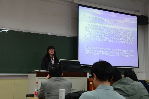 王巧荣老师首先介绍了新时期中国外交的战略目标与使命,对当前的国际格局、世界经济发展环境以及国际安全形势做出了分析。随后,她讲解了中国所处的历史方向,介绍了中国当前在国际中的处境以及中国外交的战略目标与使命。王老师系统讲述了习近平总书记的外交思想,重点介绍了“构建人类命运共同体”理念的提出、和平发展战略思想的丰富和发展以及党和国家对以合作共赢为核心的新型国际关系的倡导,并着重讲解了“一带一路”战略构想。讲座最后,王巧荣老师总结了习近平总书记外交思想的实践与成就。