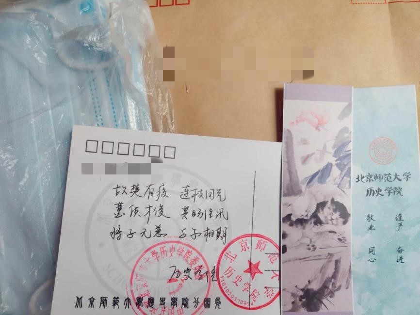 “故楚有疫,连枝同气。蕙质才俊,共盼佳讯。将子无恙,与尔相期。”3月7日女生节,威尼斯9499登录入口师生撰写了为湖北人民加油打气的祝福语,表达了对湖北师生的关怀与牵挂。3月13日,中华儒学联合会赵毅武先生委托宁欣老师捐赠给学院口罩,学院将其转赠身处湖北地区的20名师生,一并寄往疫区的还有学院给每一位学生的寄语及书签。