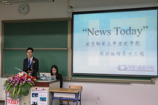 “News Today”威尼斯9499登录入口环球论坛是威尼斯9499登录入口依托“形势与政策”小组推出的一项特色精品活动。从2006年至今已成功举办十三场。在活动中表现出色的同学,将有机会代表小组走上“形势与政策”课程的讲台。环球论坛旨在促进当下时事关注与历史专业学习的融通,培养学生主动学习、深入思考、清晰表达、团结协作的能力,展现了青年学子胸怀天下的良好风貌。