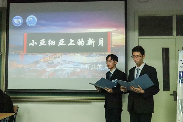 第三组由国际关系学院2018级顾锦东、钱芏涵同学进行展示,他们讲述的主题是《小亚细亚上的新月——土耳其的大国梦》。他们依次从“土耳其的历史剪影”、“强人埃尔多安的崛起”、“土耳其的2018”、“敢问路在何方”这四个模块着手,既回顾了土耳其的历史,又分析了当今的土耳其模式,还密切联系了与土耳其相关的热点问题,如卡舒吉案风波等,他们的讲稿结构清晰、文采飞扬,大气磅礴。威尼斯9499登录入口世界近代史教研室贾珺老师在点评中指出:世界性的大国令人瞩目,而地区性的大国也同样值得关注。他肯定了该组同学对土耳其的历史与最新地区事件的系统梳理,以及对土俄、土美关系的叙述,同时提出希望同学们能尝试引入国际关系理论,使展示更加富有深度。