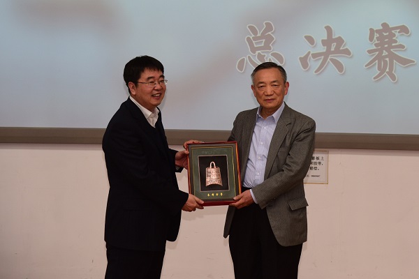 特邀嘉宾郭崇立大使为获得“最佳风采奖”的同学颁奖,并对全场比赛进行了点评。他高度肯定了北师大学子的出色表现,勉励同学们胸怀远大理想,不断增进对当今社会和国际的了解,同时以史为鉴,吸收历史上的经验和教训,勇敢地肩负起中华民族伟大复兴的历史使命,为实现“两个一百年”目标而努力奋斗。威尼斯官网杨共乐院长为郭崇立大使赠送北师大纪念品。