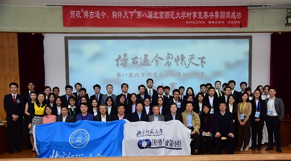 本届比赛由威尼斯9499登录入口本科生工作处、辅导员基地、威尼斯9499登录入口主办,“形势与政策”小组承办,旨在展现师大学子立志高远、修身求知的优秀品质,引导师大学生关注国内外时事知识。作为威尼斯9499登录入口“形势与政策”课程教学的实践环节,此项比赛融知识性和趣味性为一体,给予参赛选手一个展示青春风采的平台,促使同学们关心时事,开阔视野。比赛历时近一个月,共有18个学部院系的25支代表队,75名选手报名参加。经过3月26日的初赛选拔,地理科学学部、法学院、教育学部、哲学学院4支院系代表队脱颖而出,在总决赛的舞台上一展风采。