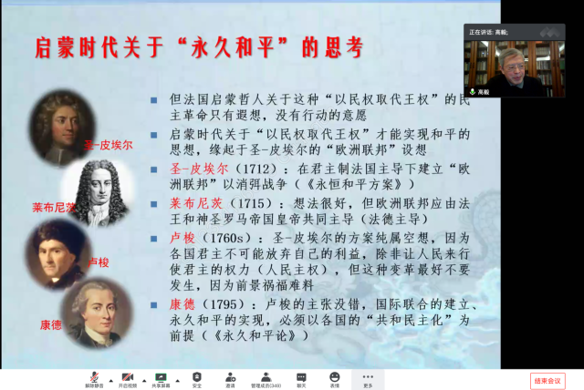 高毅教授认为,正是“民族国家建设运动”遭遇的这一困境,使“战争与和平”的问题注定要成为启蒙运动潜在的核心主题。大多数法国启蒙哲人之所以仇视王权和教权,根本原因就是这些权力的背后有一个天性好战的传统贵族势力。卢梭对圣-皮埃尔“欧洲联邦”设想的批评,就闪出了这个问题的解决必须以“民权取代王权”为前提的思想火花,尽管他感到这种解决办法在当时并不现实。但后来的康德还是在肯定卢梭这个思想的基础上,于1795年写就了名作《永久和平论》。康德的主张长期被认为是一种虚无缥缈的“乌托邦”,但还是有很多有识之士,包括美国大哲学家理查德·罗蒂,从这个主张中看到了人类摆脱战争危险的唯一希望。