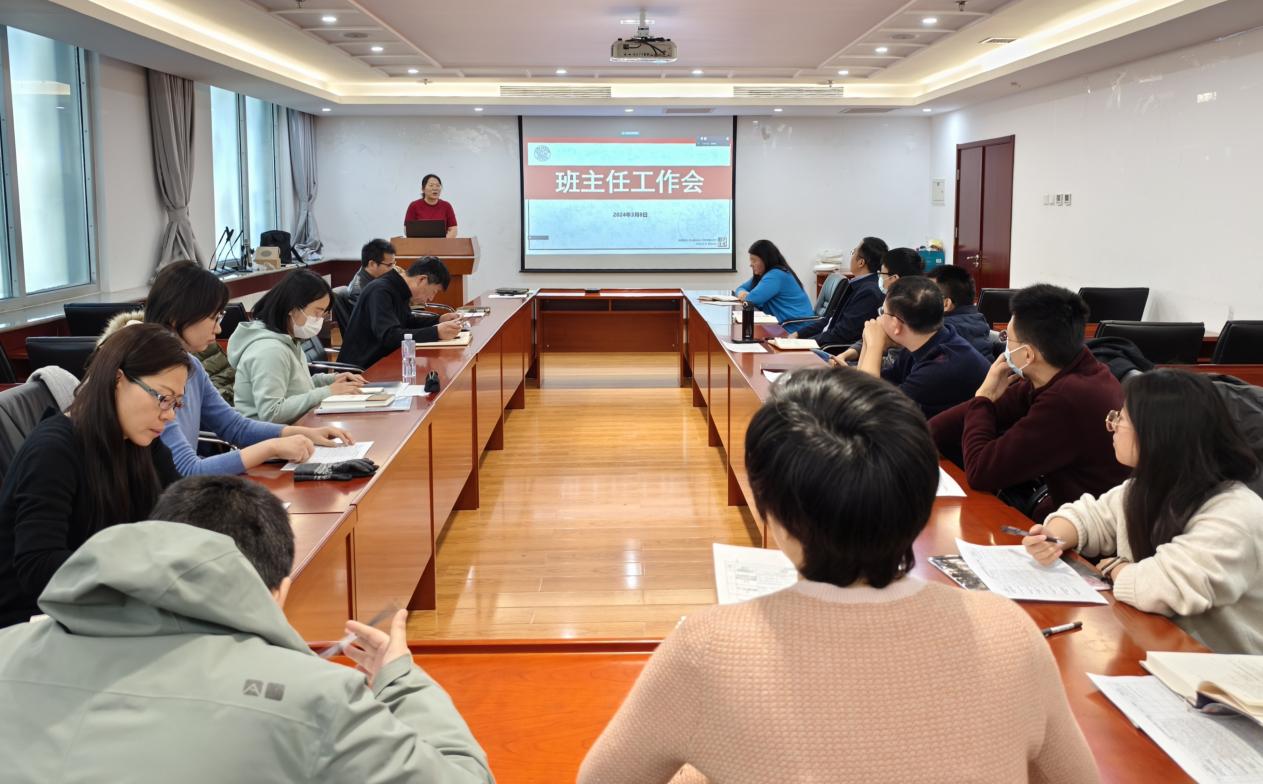 赵云慧通报了近期上级及学校、学院学生工作总体情况,并围绕学生思想政治教育、安全教育、学生身心健康发展、学院心理辅导站建设、就业及生涯指导工作等方面新学期学院工作,并就班主任及班级工作做了具体安排。